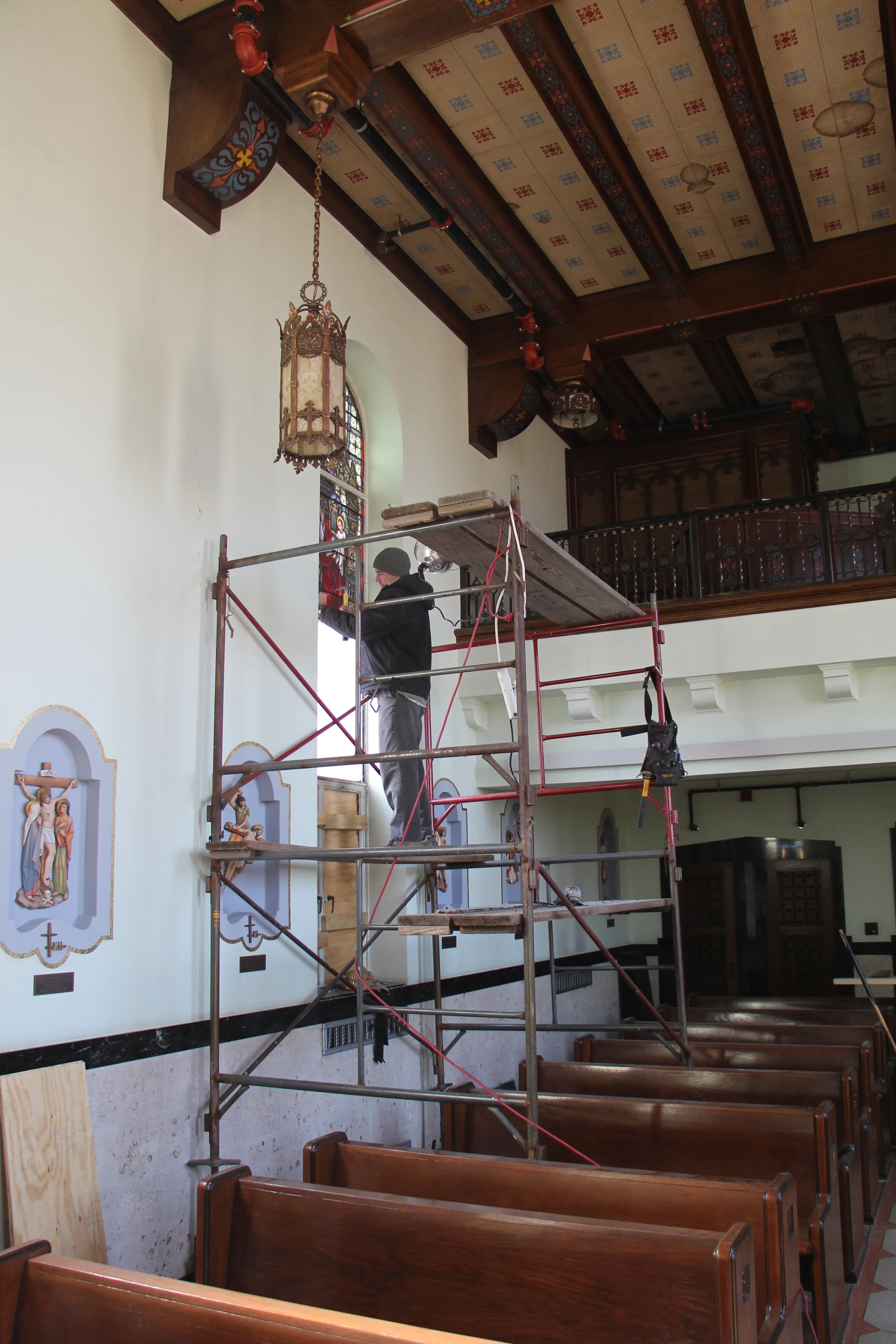 Emil Frei, one of the oldest stained glass firms in the country, has been hired by St. Patrick's to do the repair work on the windows. The great-great-grandchildren of Emil Frei were in Nebraska last week to remove the stained glass windows that their family produced nearly a century ago. The windows were taken back to St. Louis where they will be cleaned and repaired in their studio.